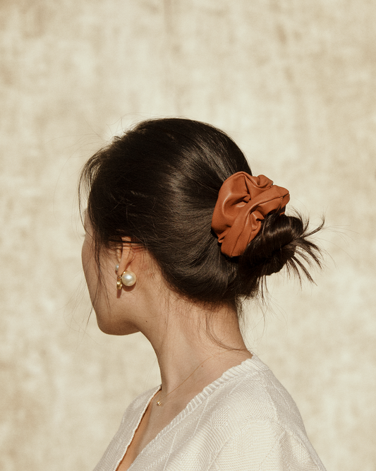 PU Leather Brown Scrunchie